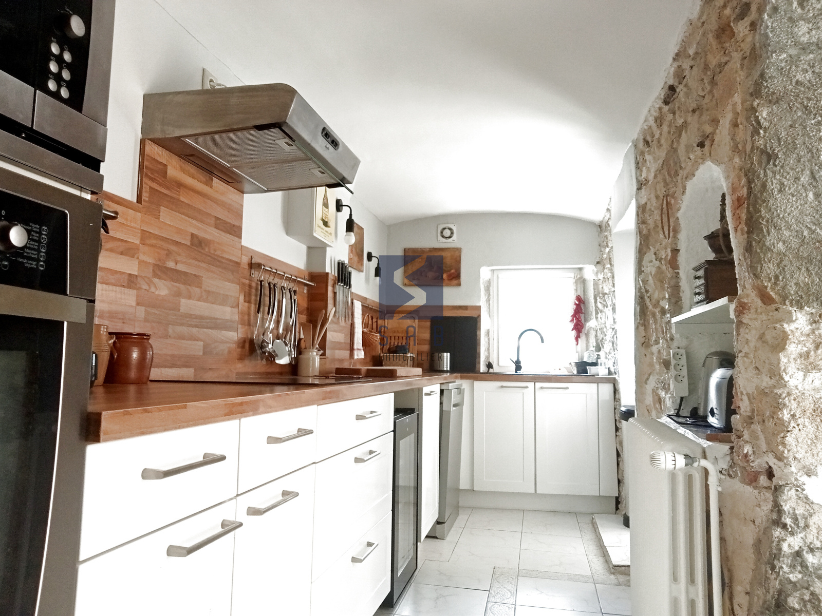EXCLUSIVITE - La Voulte sur Rhône : Charmante maison de rue avec terrasse et jardin offrant 5 chambres sur 150 m² : Au RDC un hall d'entrée, un salon, un séjour-salle à manger, une cuisine équipée et une salle de bains/wc - Au 1er étage : 3 chambres spacieuses dont une donnant sur grand dressing/bureau, une salle de bains/wc - Au 2ème étage : 2 spacieuses chambres, une salle d'eau/wc - Terrasse de 32 m² donnant sur jardin clôturé/arboré - Caves voûtées saines et spacieuses - Chauffage central Gaz de ville. Tout à l'égout.