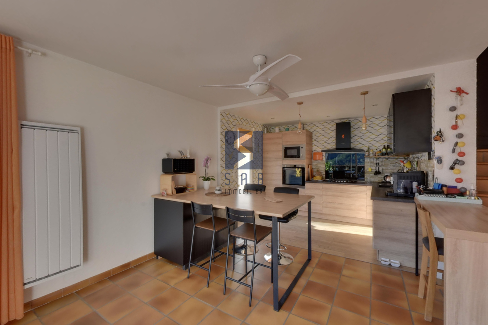 Au rez-de-chaussée, vous trouverez une cuisine équipée ouverte sur un séjour lumineux accédant directement à une agréable terrasse couverte avec vue, parfaite pour les repas en extérieur.