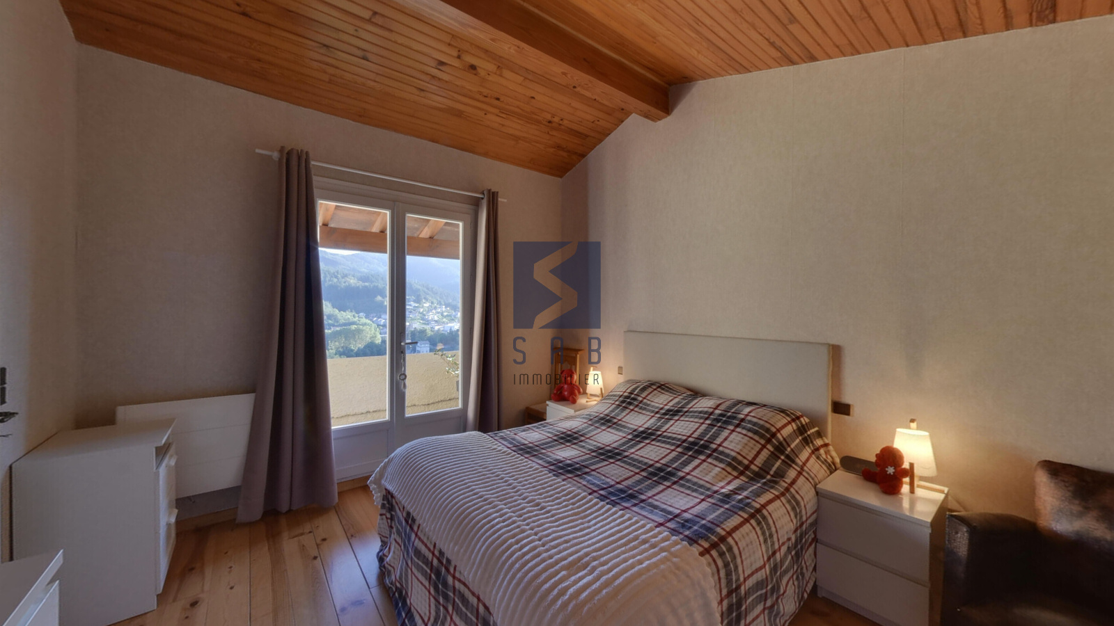 À l’étage, trois chambres spacieuses dont une suite avec dressing et balcon couvert plein Sud, une salle de bains et un WC indépendant viennent compléter l’ensemble.