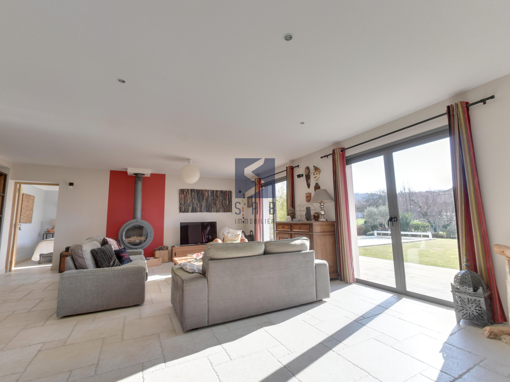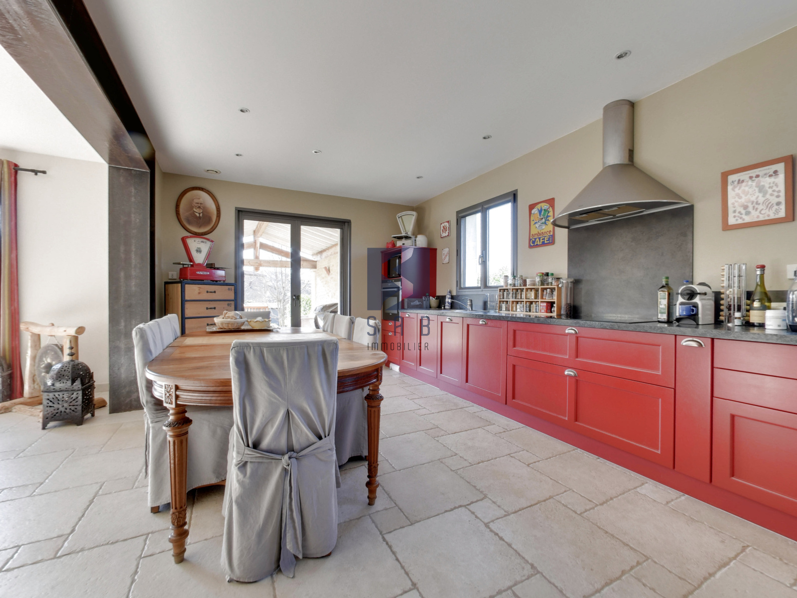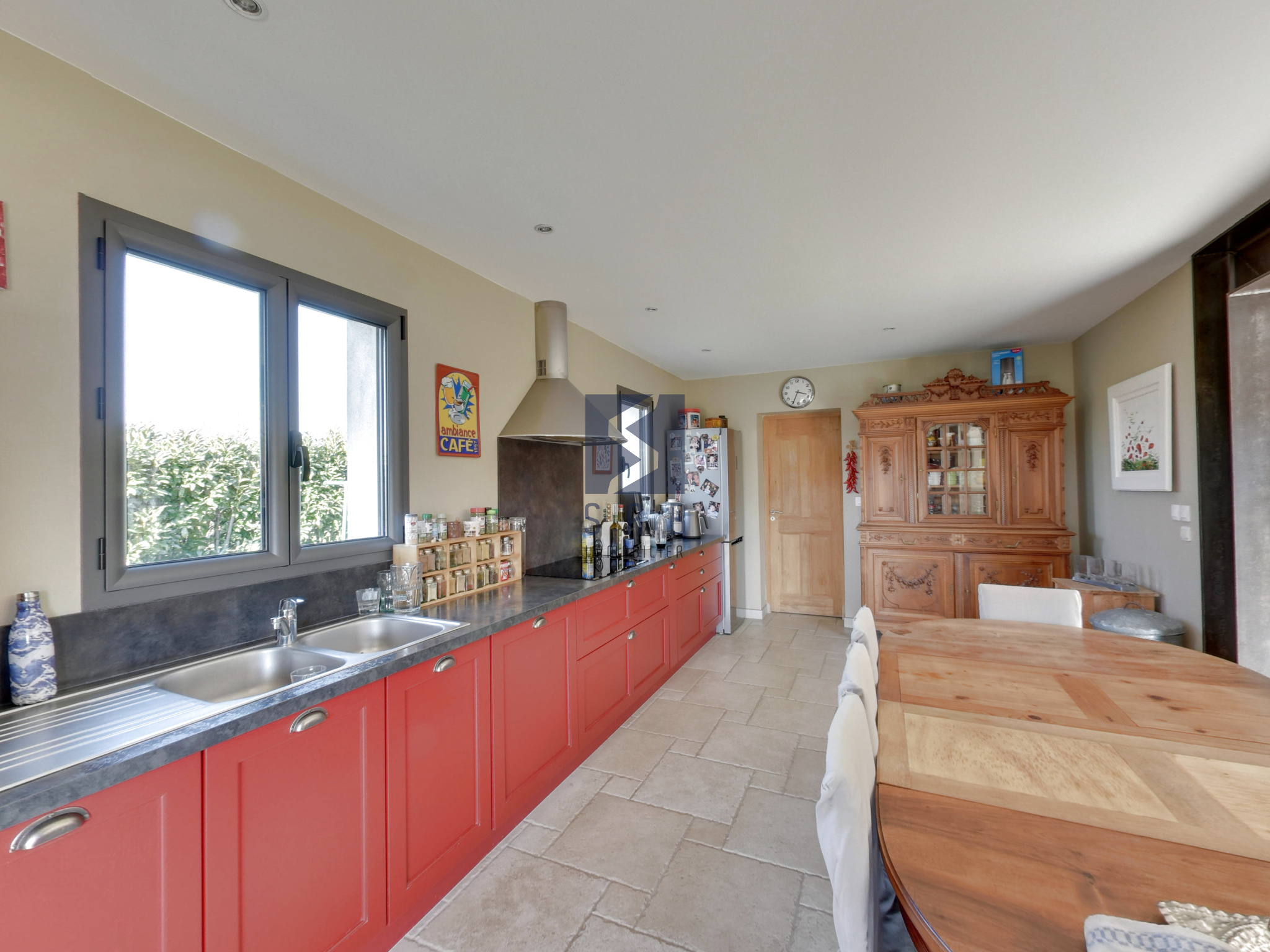 La pièce de vie de 60 m², véritable cœur de la maison, propose un espace lumineux et convivial ouvert sur une magnifique terrasse couverte propice aux réceptions estivales. Celle-ci communiquant directement avec la cuisine par une porte à galandage prolonge naturellement l’intérieur vers un terrain paysagé de 1 600 m², parfaitement exposé et offrant une vue dégagée. L’extérieur accueille une piscine avec PVC armé et volet roulant de sécurité, un pool-house , un garage d’environ 30 m², un carport, un cellier et une buanderie. Un ensemble harmonieux et fonctionnel, idéal pour une vie familiale épanouie.