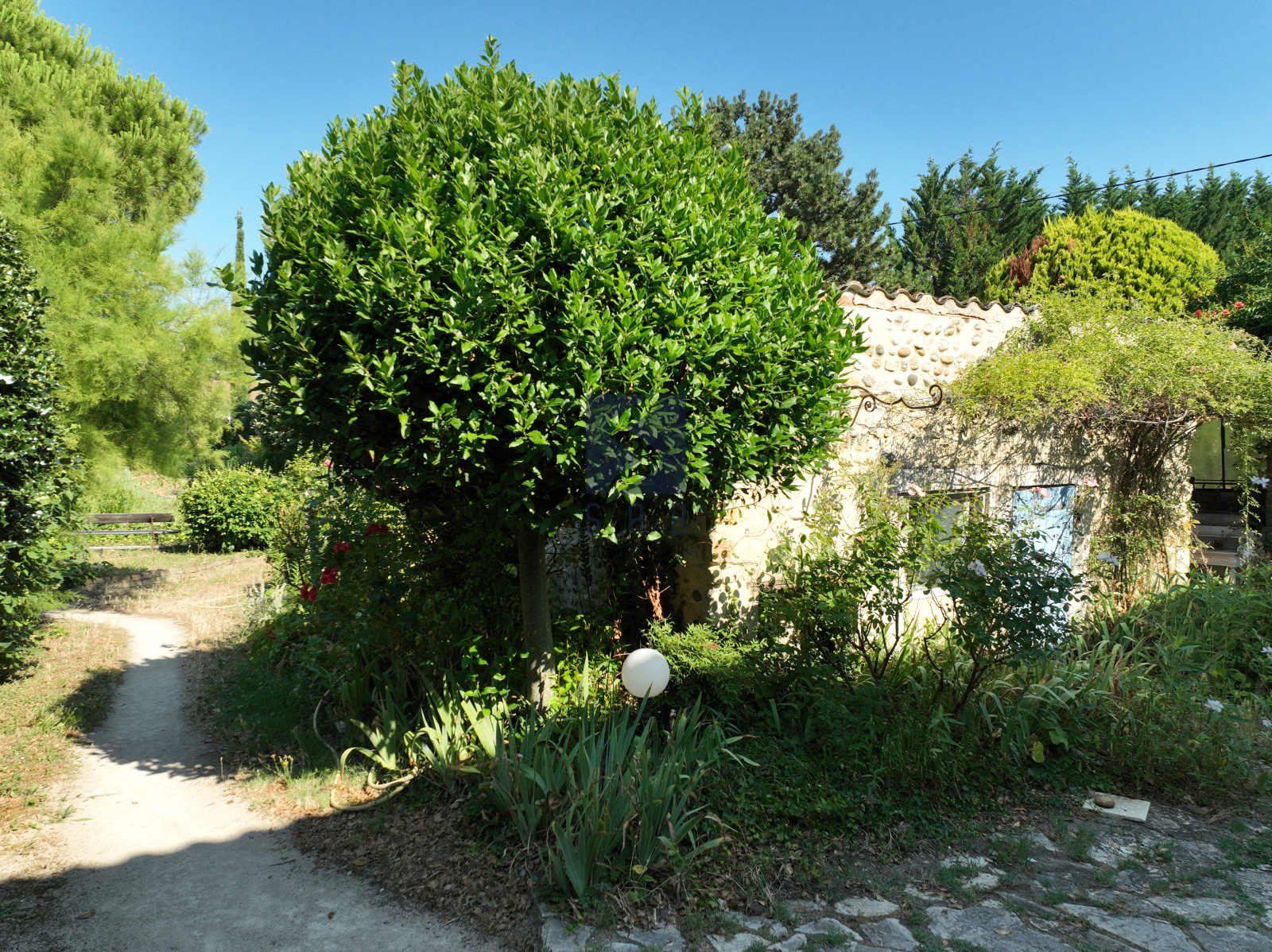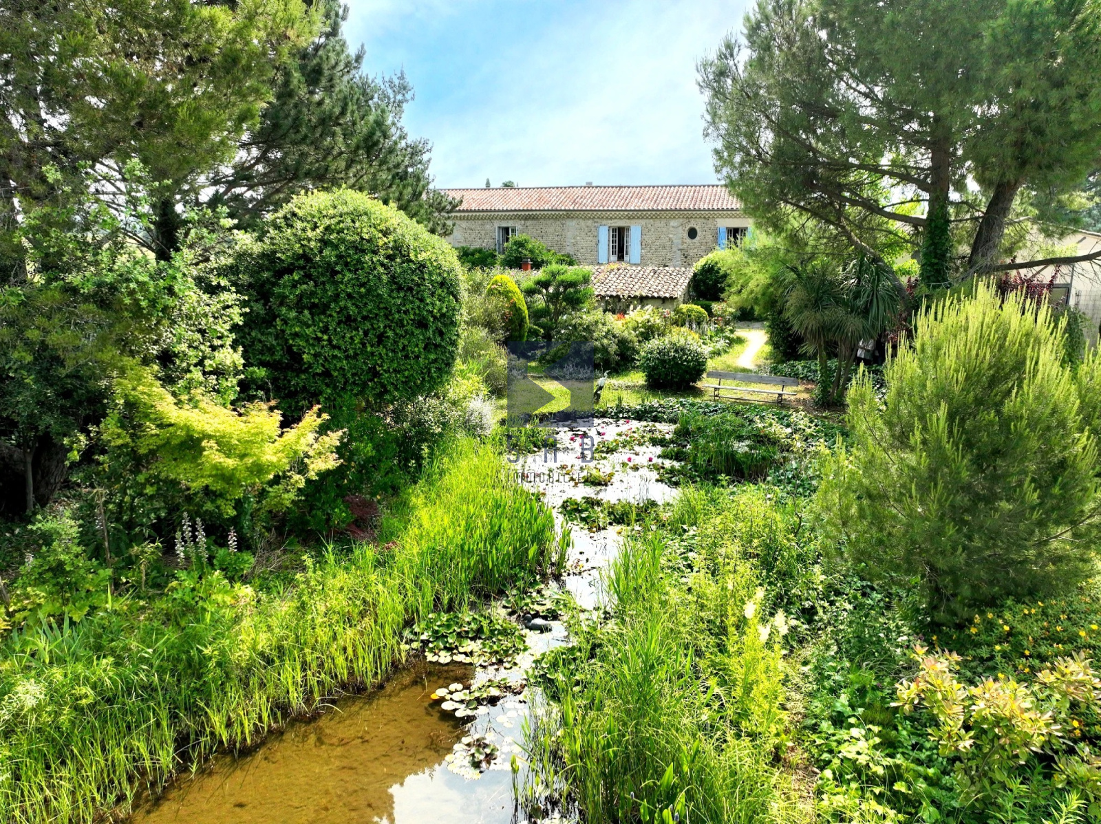 Vous serez agréablement surpris par la biodiversité que l'on peut observer autour de la mare parsemée de nénuphars, véritable coeur du jardin, à proximité de l'ancien four à pain et du bureau indépendant. Enfin, deux pics permettent d'assurer l'arrosage de cette joyeuse végétation, qui contribue à rafraîchir l'air environnant.