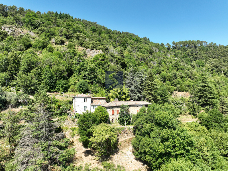Le terrain d’environ 3 hectares alterne zones boisées, prairie et espaces en restanques, offrant une vue dégagée et un ensoleillement optimal.