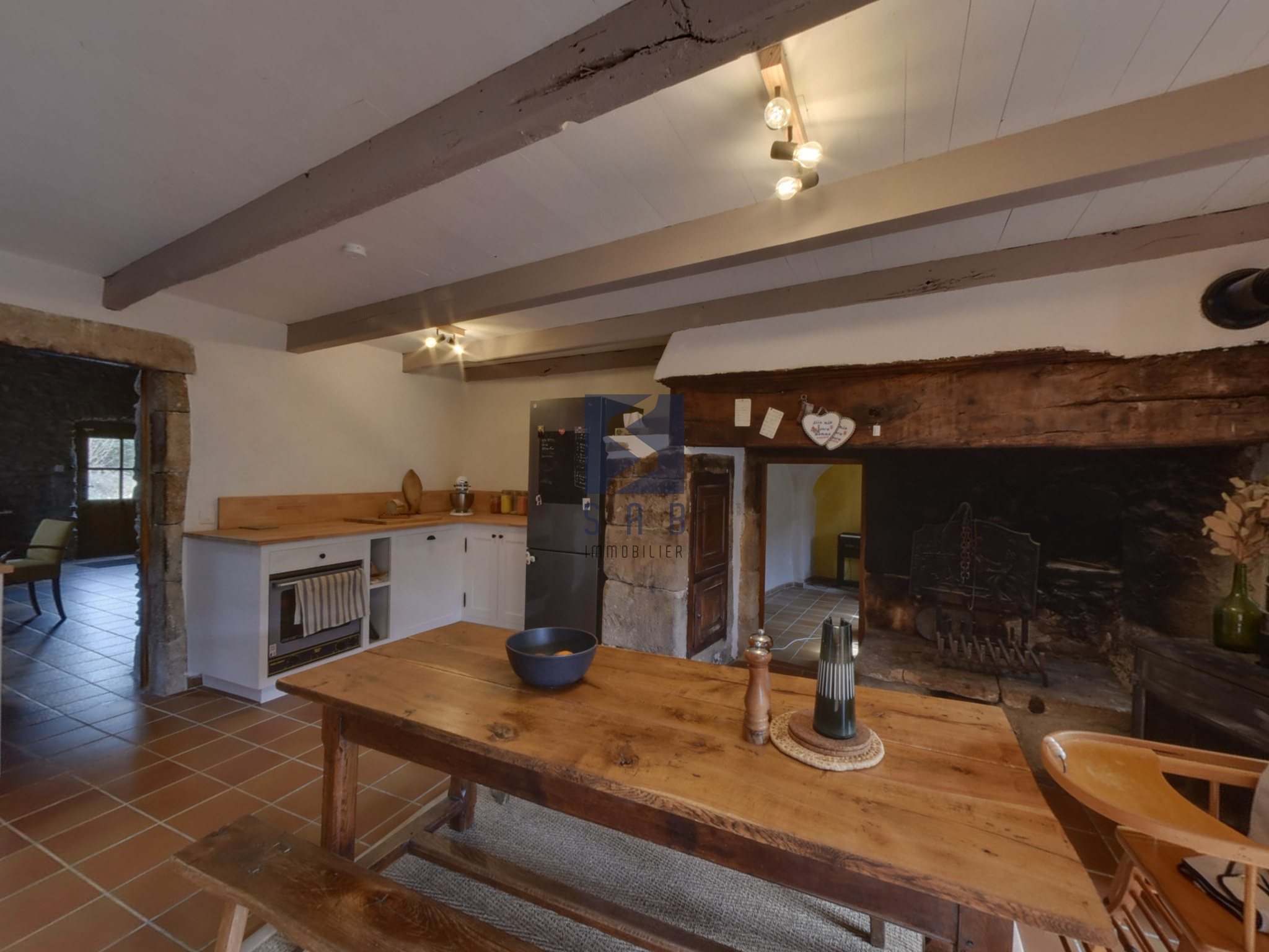 La maison propose de beaux volumes, avec notamment une pièce de vie généreuse d’environ 70 m² comprenant salon/salle à manger. Un espace lumineux propice aux moments de convivialité en famille ou entre amis, une cuisine ancienne cheminée à réhabiliter.