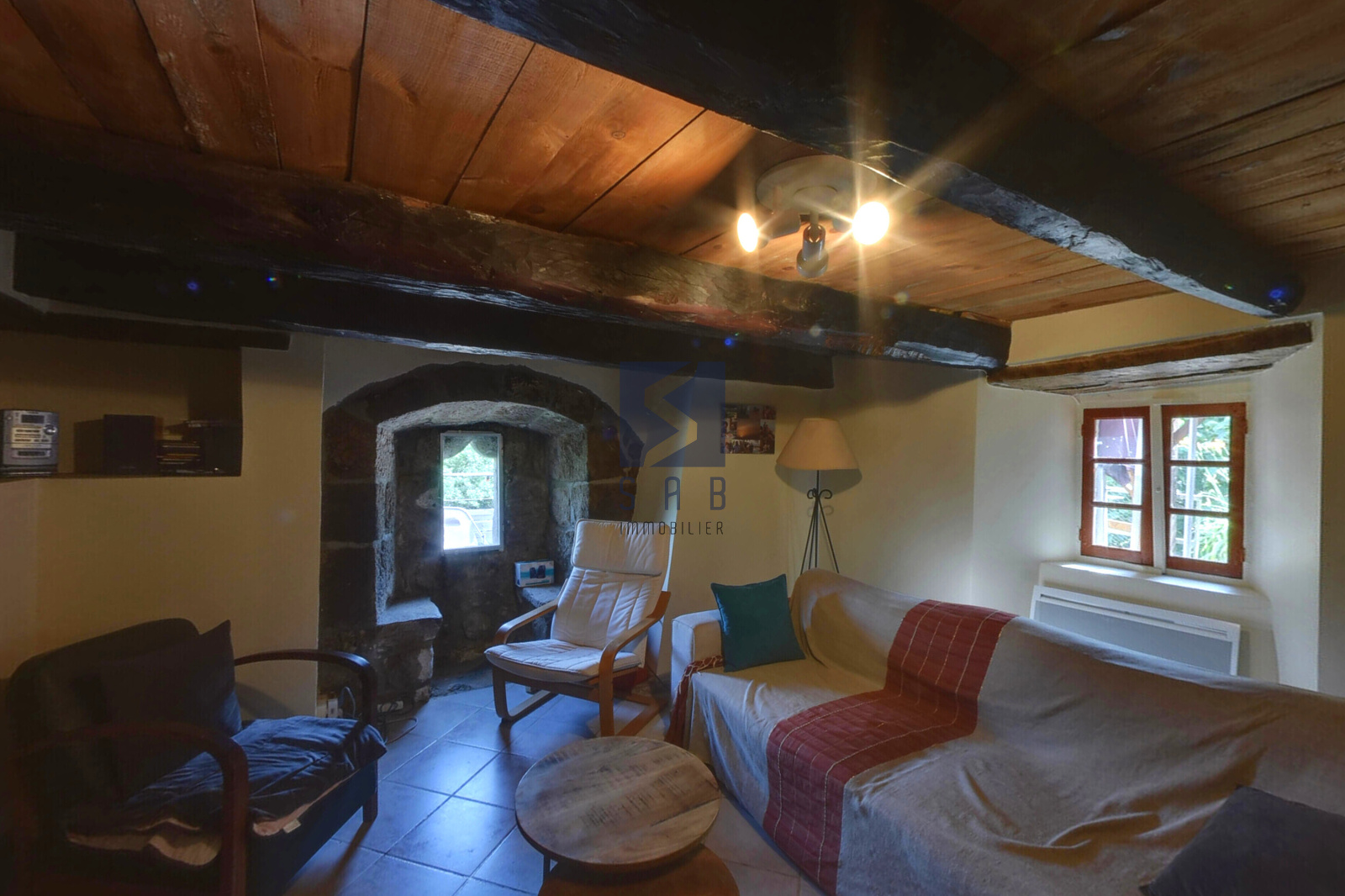 La maison est composée en rez-de-chaussée d'une cuisine avec une cheminée ardéchoise, un salon avec poele à bois, une petite chambre, salle d'eau et WC indépendant. A l'étage : 2 grandes chambres en enfilade.